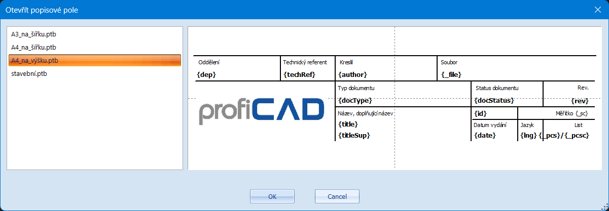 Při výběru popisového pole se nyní zobrazuje jeho náhled, což usnadňuje výběr správného pole.